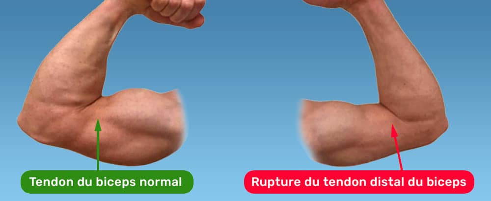 Cette lésion est moins fréquente que les ruptures proximales du biceps (à l’épaule) mais elle est toujours plus sérieuse, car le tendon ne peut pas se cicatriser spontanément.